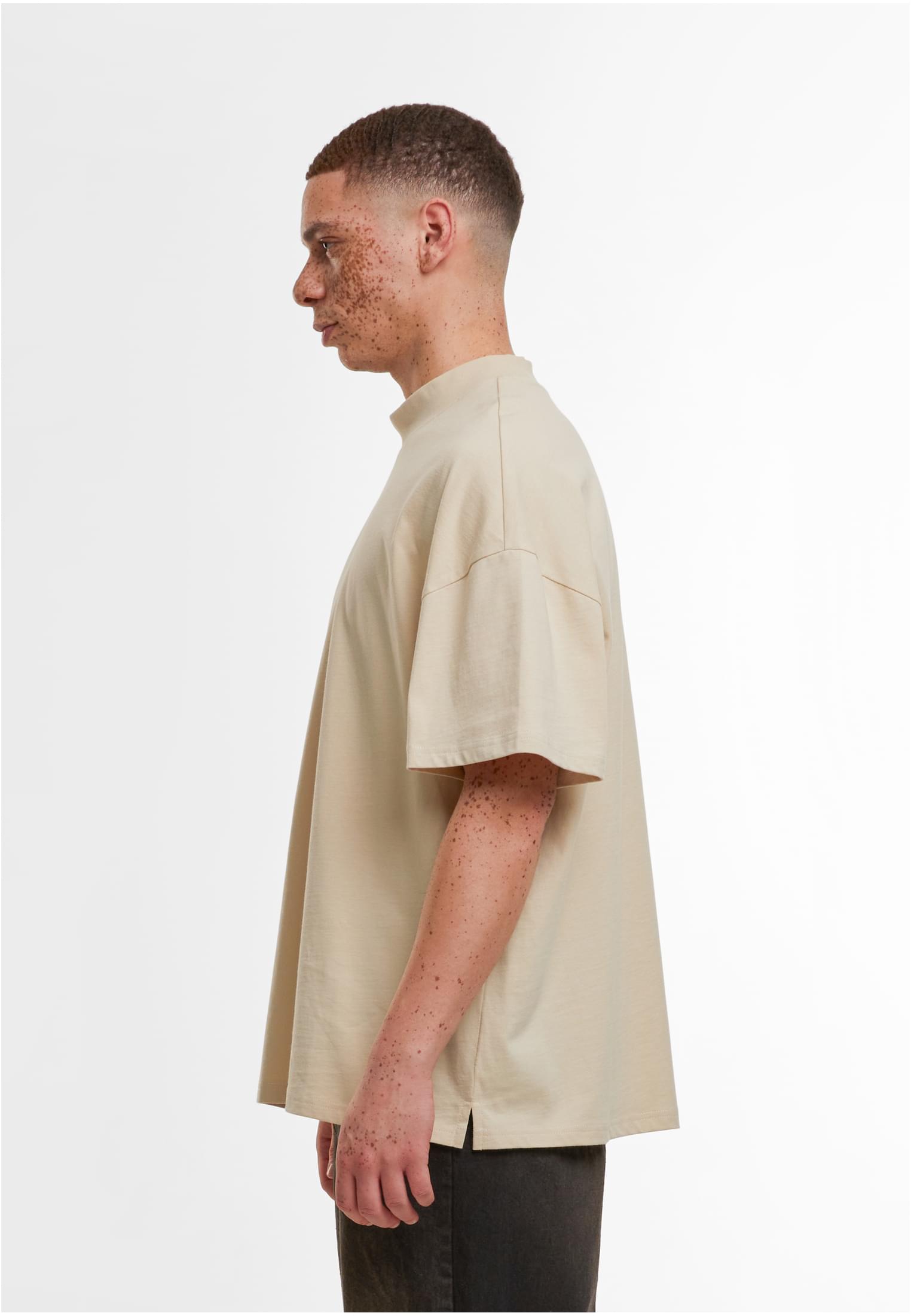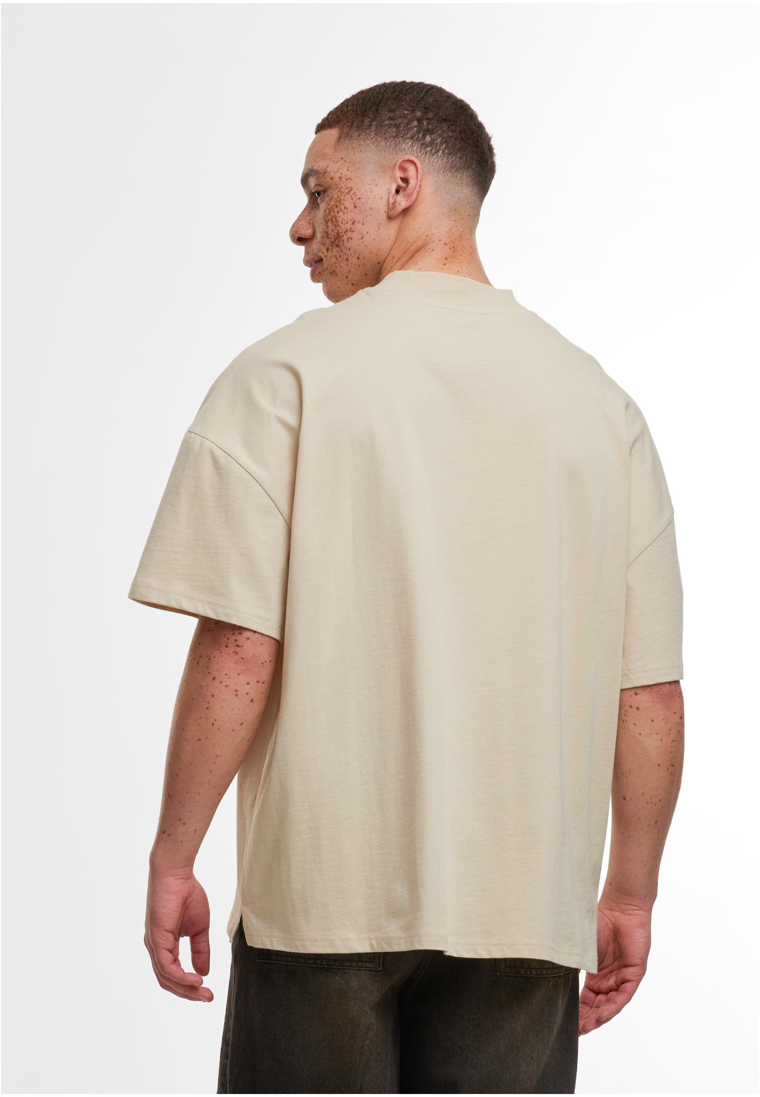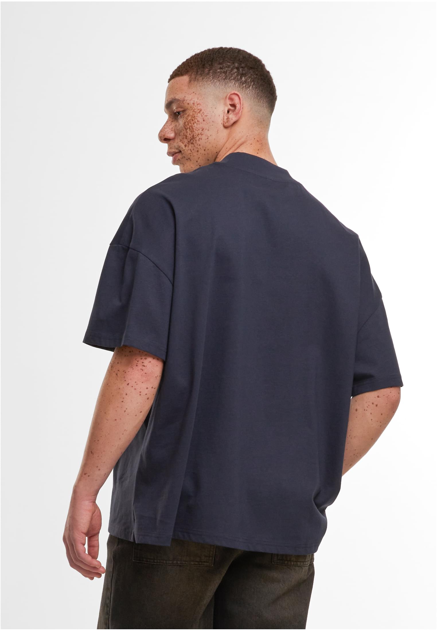 The men's shirt made of smooth cotton presents itself pragmatically with an oversized fit and dropped shoulders. Standing out is the wide, high and ribbed crew neck. The tee is ideal for further refinement with embroidery, screen printing or flock printing.