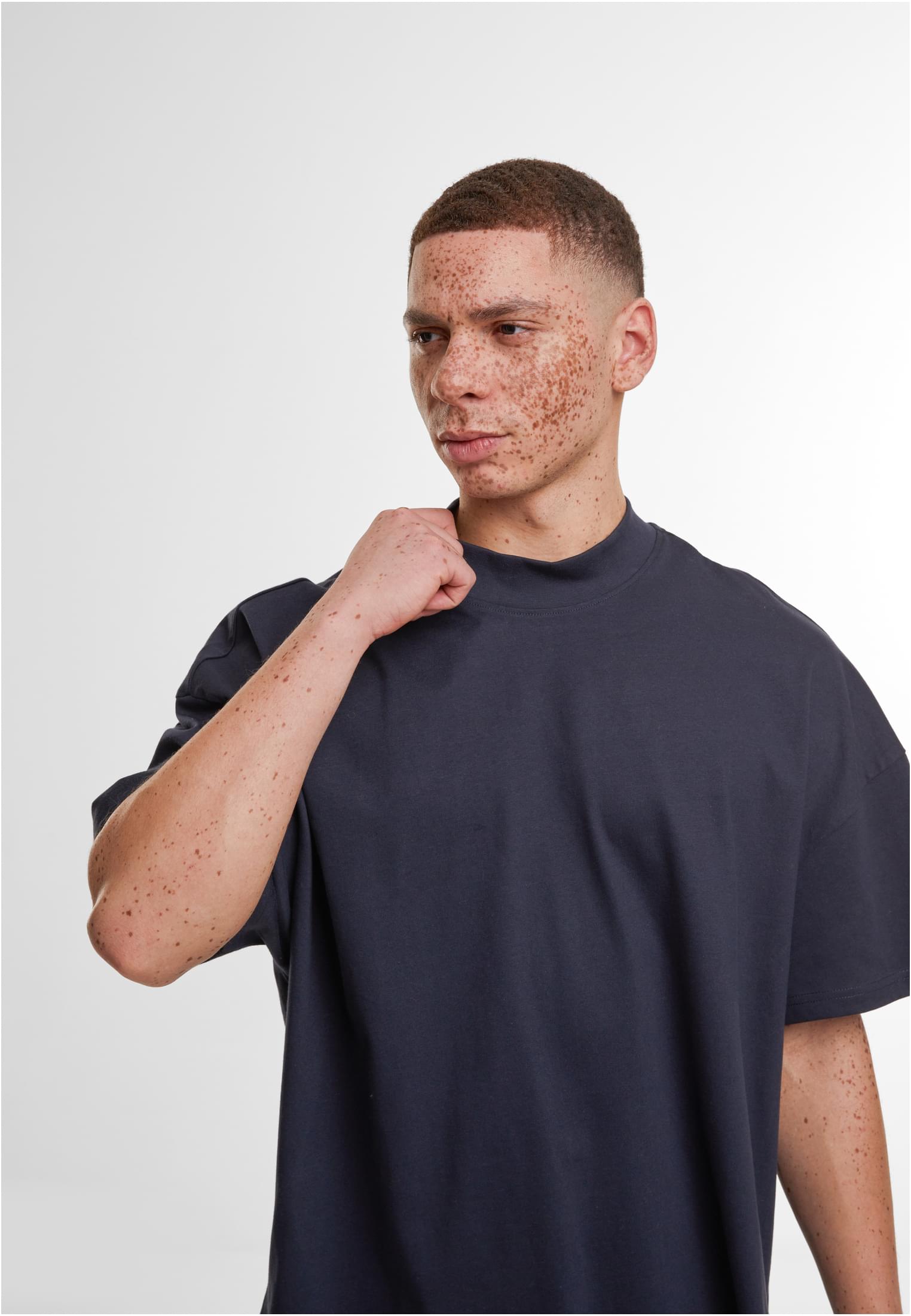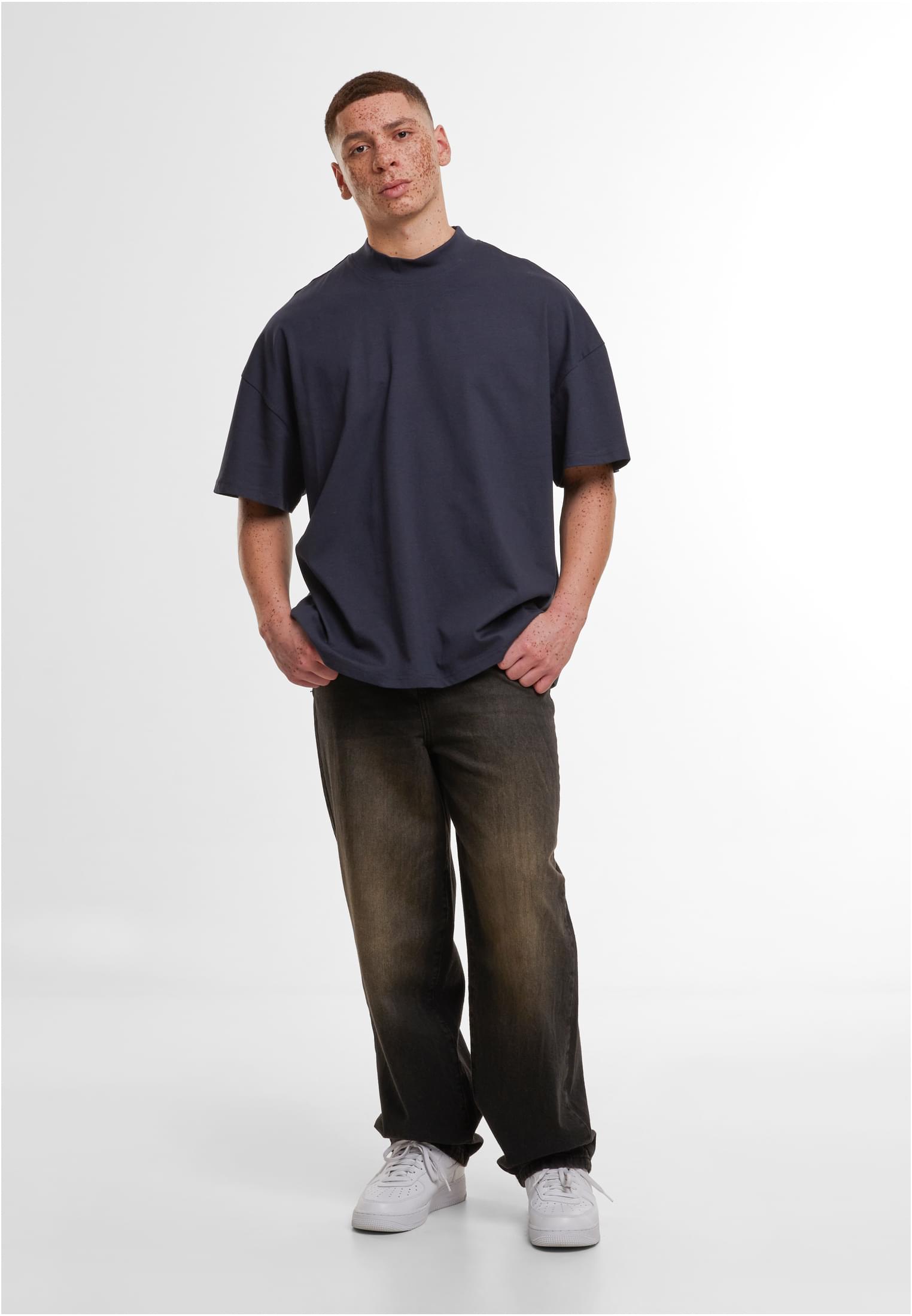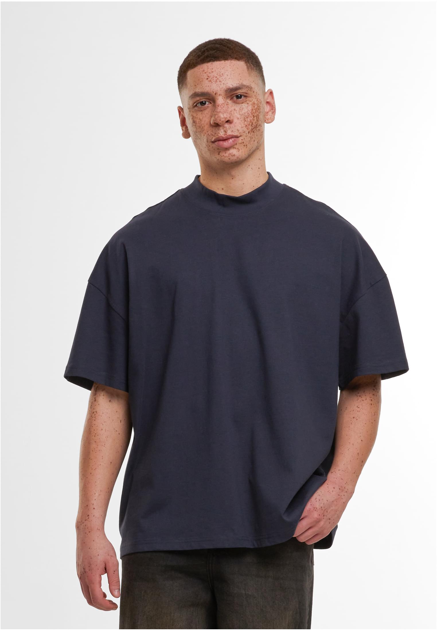 The men's shirt made of smooth cotton presents itself pragmatically with an oversized fit and dropped shoulders. Standing out is the wide, high and ribbed crew neck. The tee is ideal for further refinement with embroidery, screen printing or flock printing.